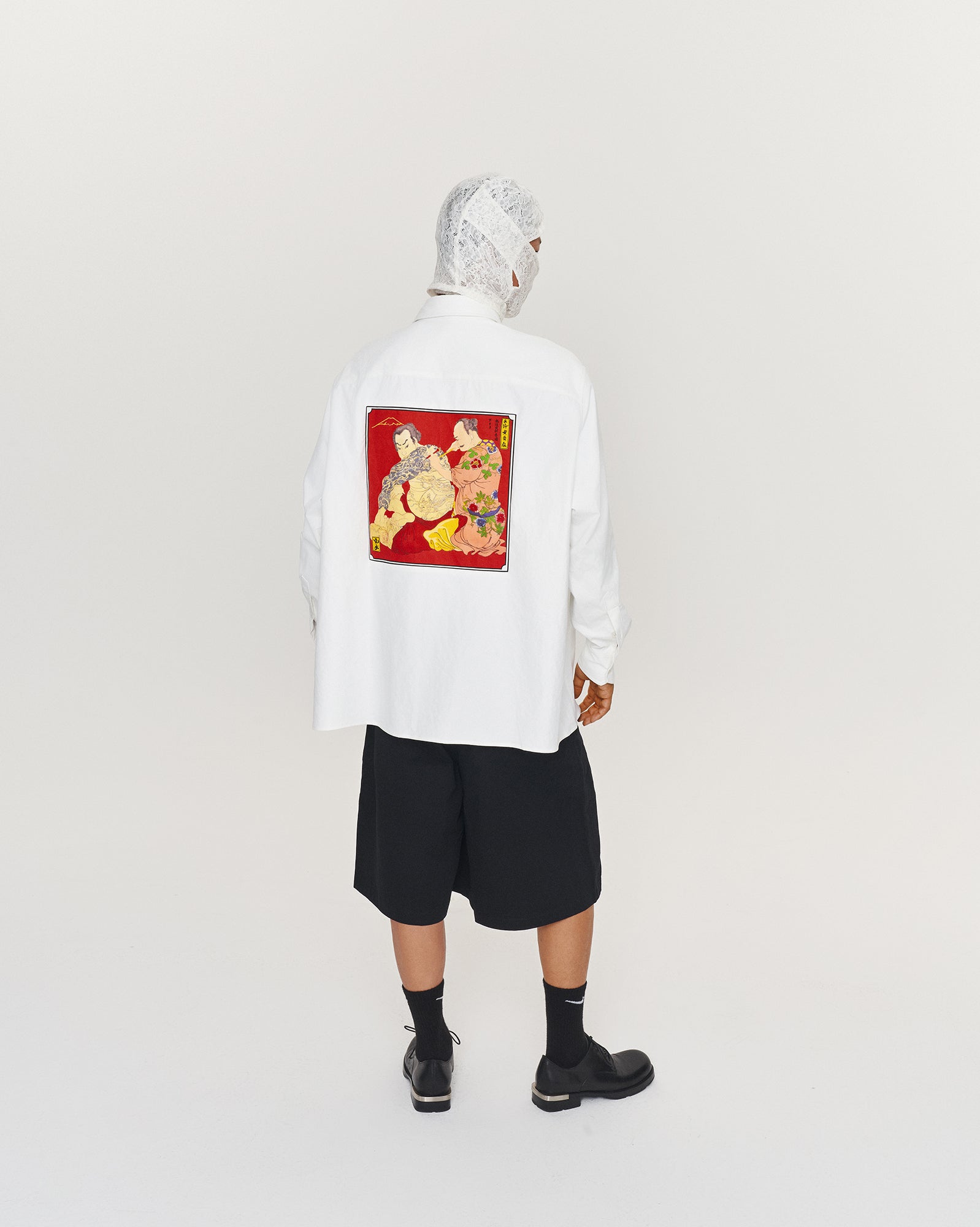 This shirt is crafted from heavy fabric and features three-dimensional tailoring, breaking away from the simplicity of traditional white shirts. In terms of design details and texture, this shirt is destined to become one of the most fashionable and structured items in the 24FW collection. It is not just a white shirt but a fashion piece imbued with artistic flair and a unique cultural background.