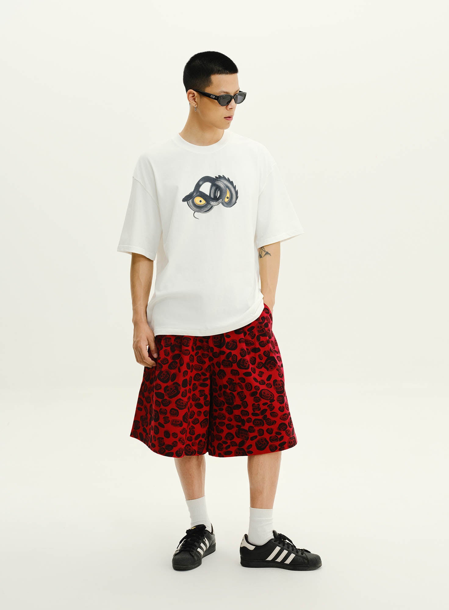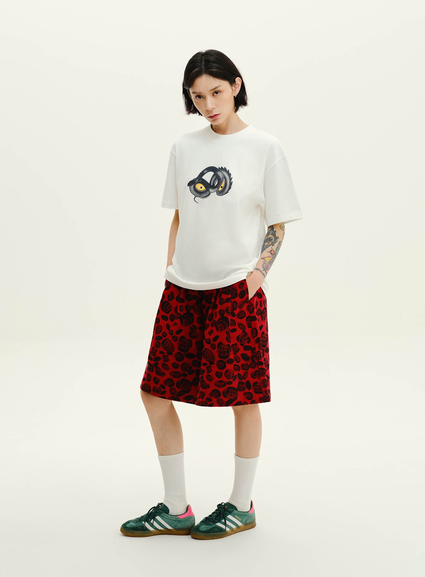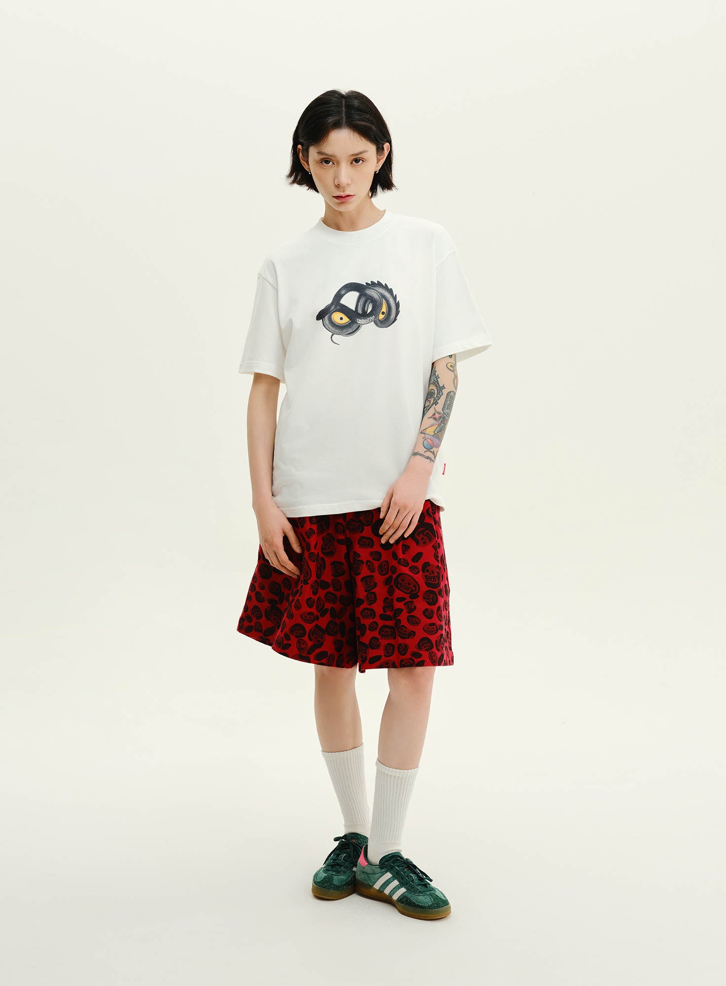 This design originated from a photo taken by a TenGuSan fan who keeps snakes. She captured an impressive shot of her black king cobra, and thoughtfully added two eyes and lashes inspired by the TenGuSan mask. In a time when snake-themed T-shirts generated by AI are everywhere, this photograph stands out for its sincerity and authenticity.