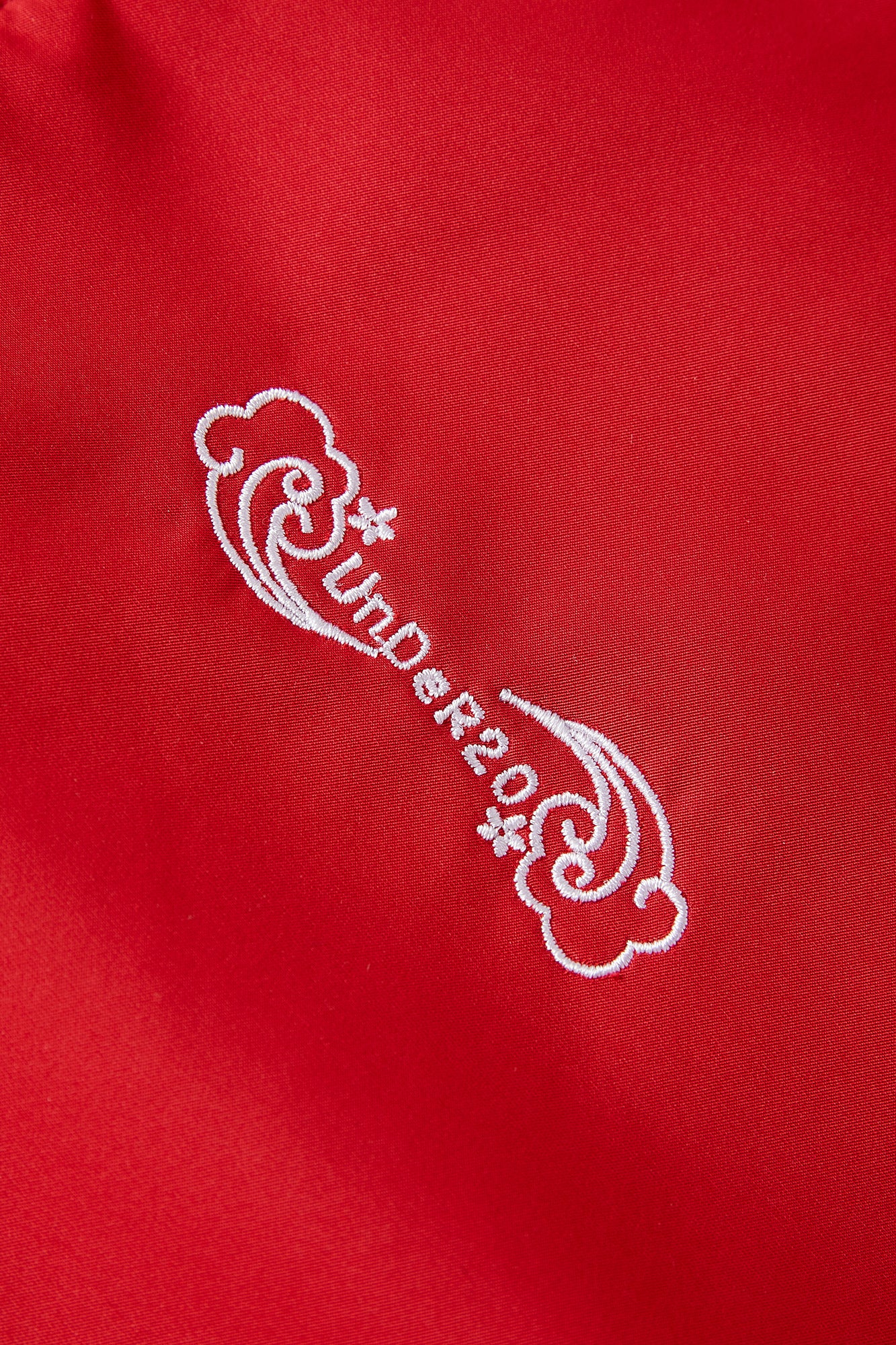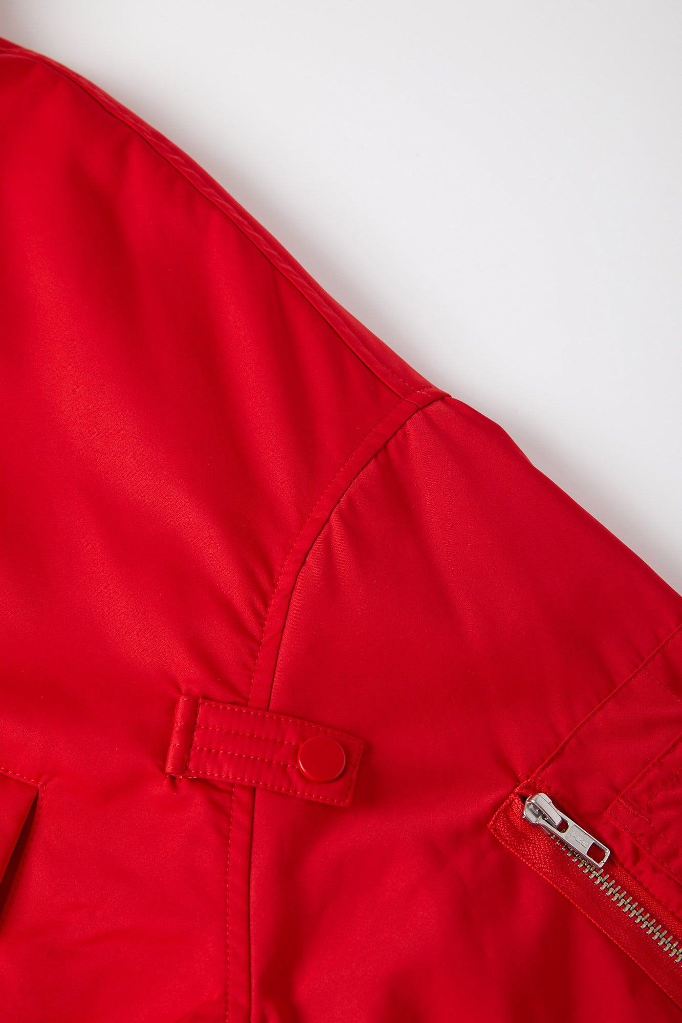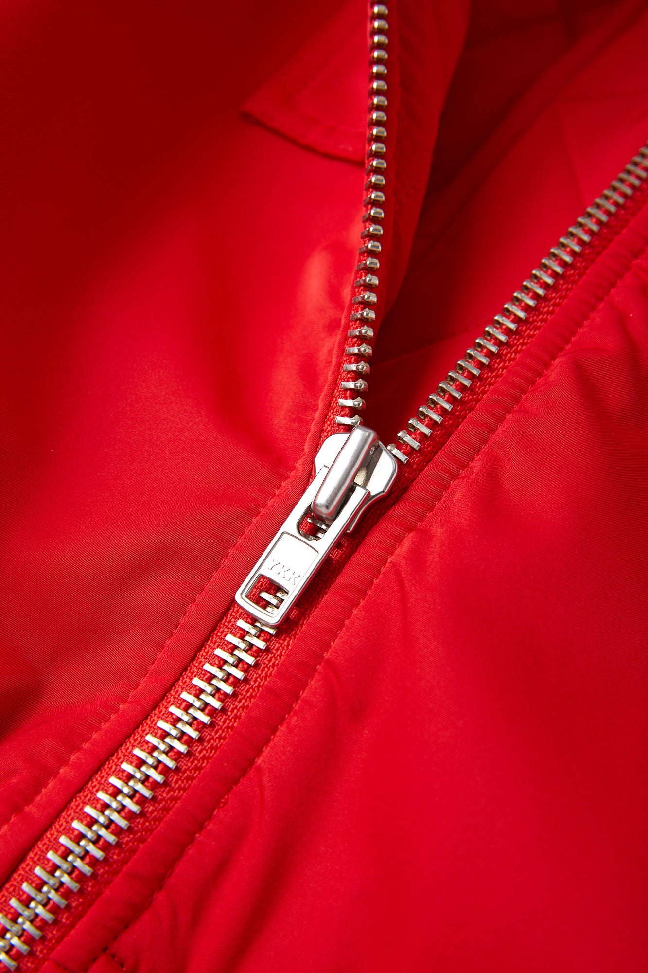 This “Tokyo Spine 3.0” bomber jacket from the UnDeR20 classic regular series is a bold reinterpretation of the classic MA-1 bomber jacket. The scimitar-shaped sleeves give a sense of fluidity in motion, while the cropped silhouette makes the entire appearance more sleek and streamlined, highlighting the wearer’s contours and posture.