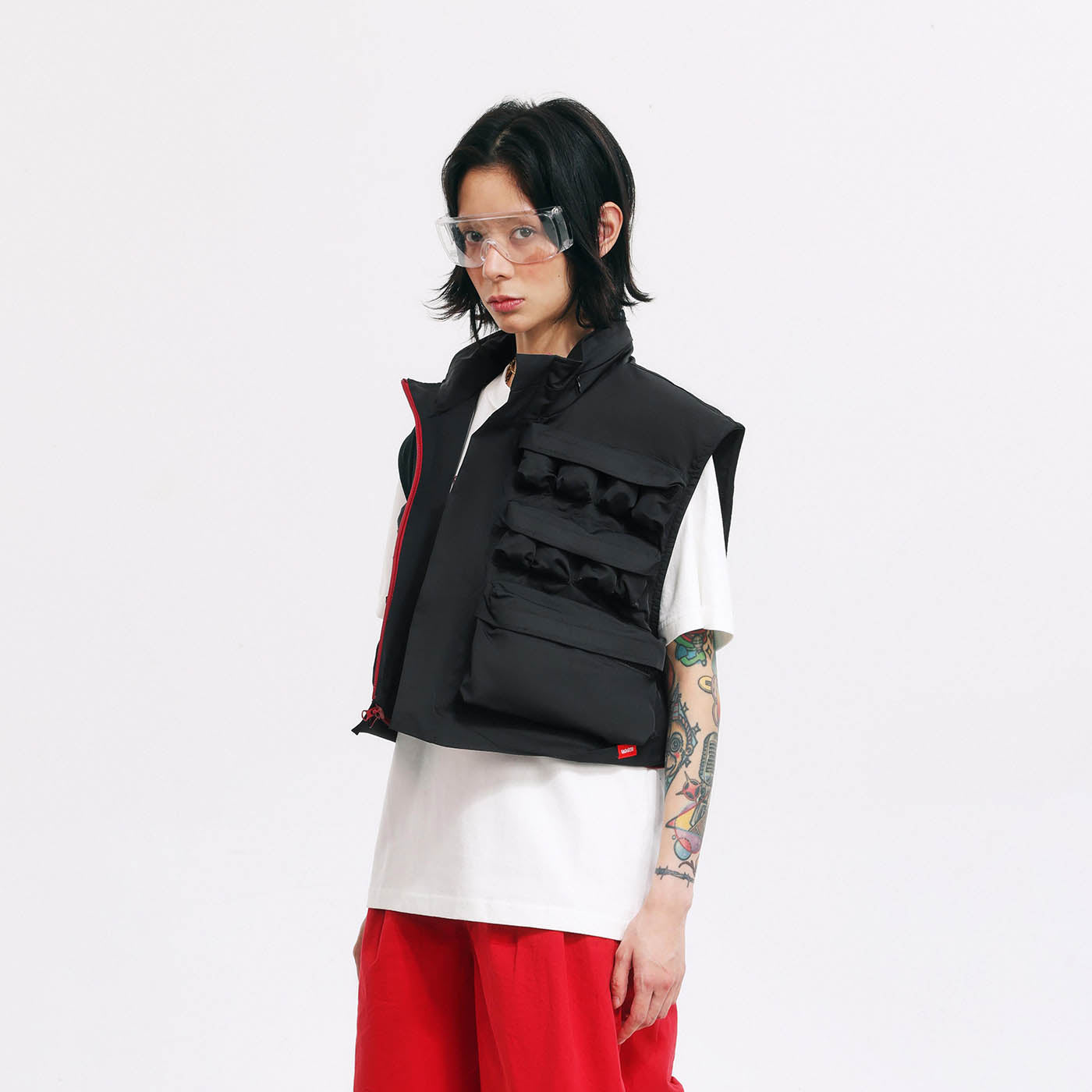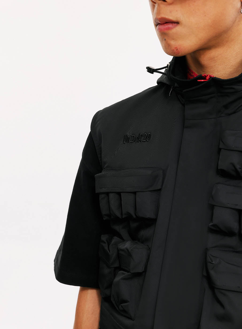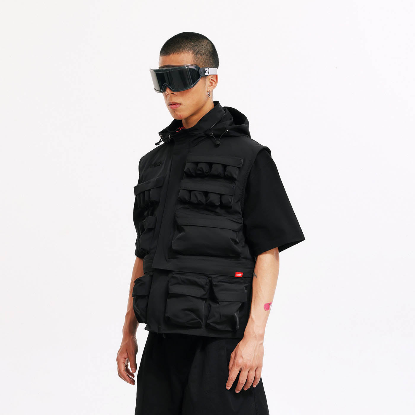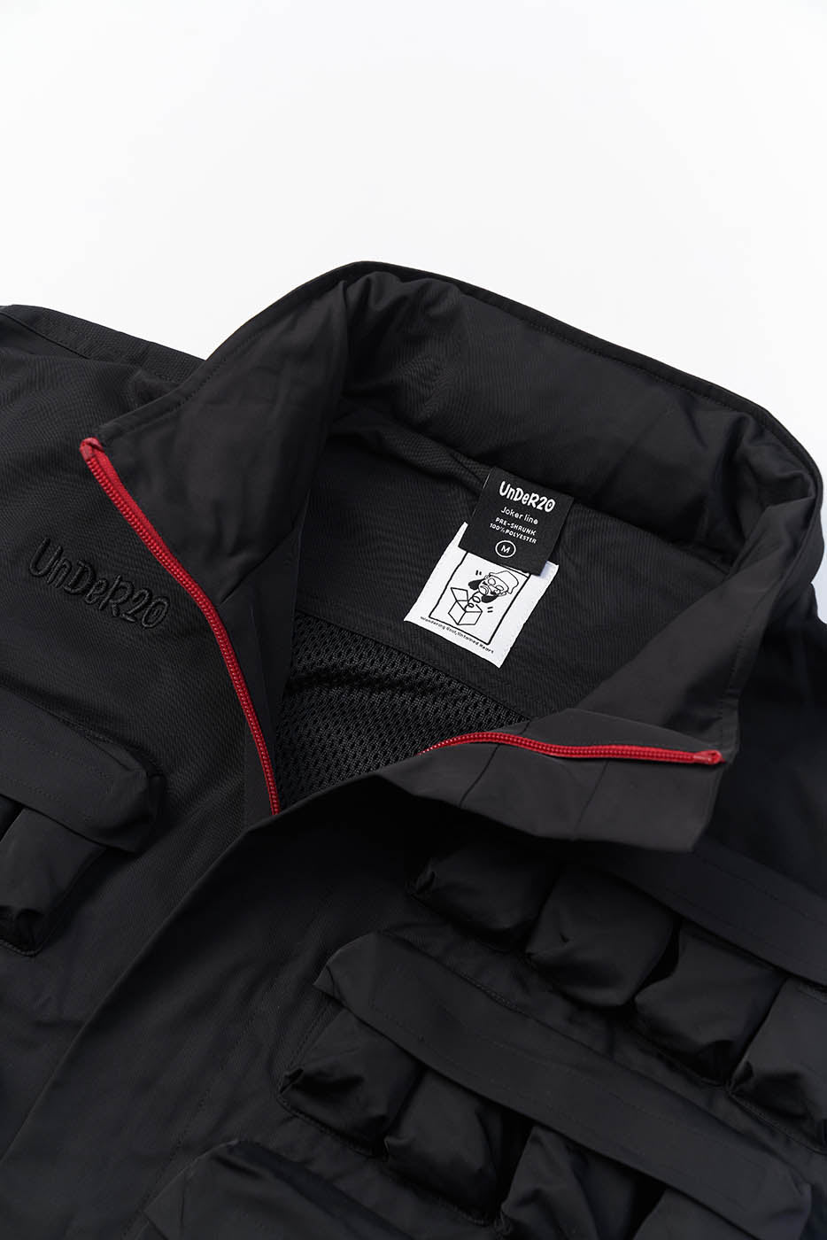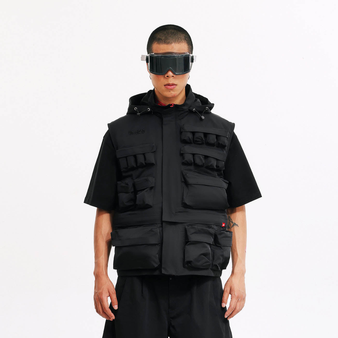 Introducing the UnDeR20 Joker, the high-end line of UnDeR20, which aligns with our brand's ethos of whimsical and satirical tones. The debut piece from this line is this outdoor photographer vest, which not only caters to the needs of photographers, outdoor enthusiasts, and fishermen but also exemplifies the fusion of functionality and fashion through its detachable and reconfigurable design. It features splash-resistant fabric to protect your valuable assets, an accordion pocket that prevents light exposure to film, a concealed foldable hood, and waterproof zippers for ultimate practicality.