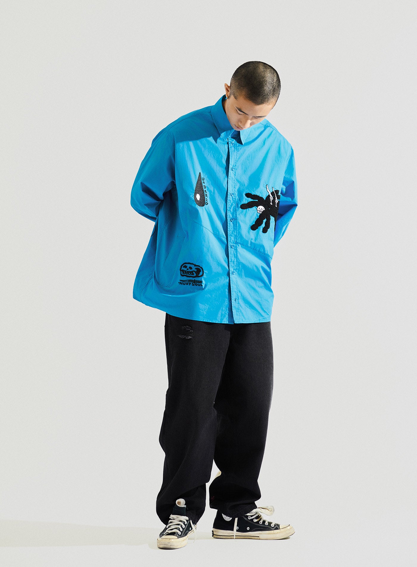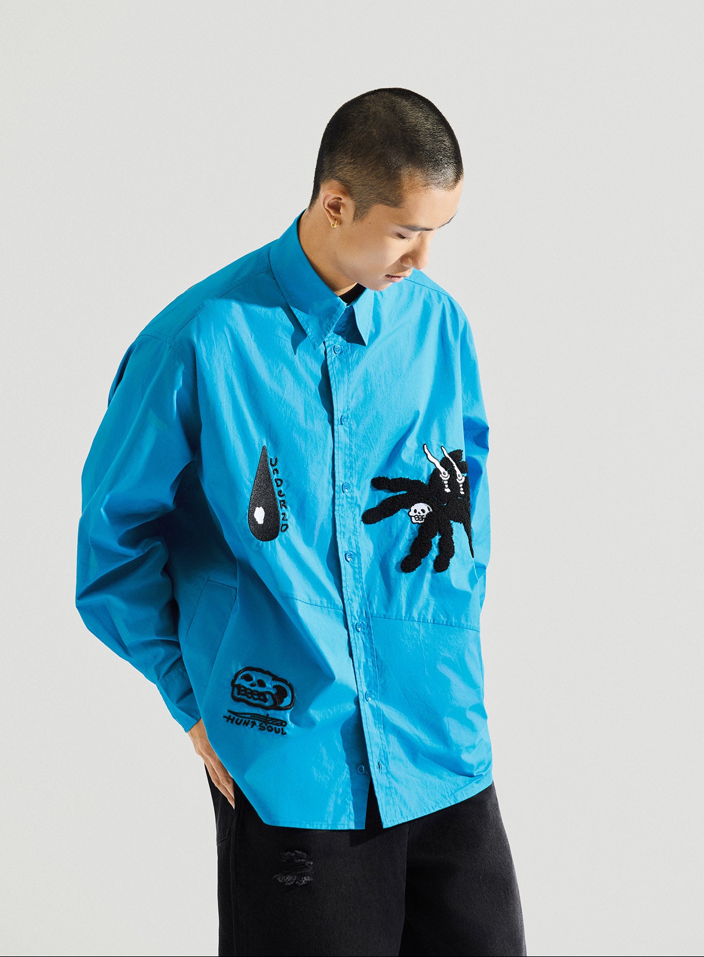 In terms of silhouette, the shirt is oversized yet not bulky, balancing looseness with structure. To enhance the sense of strength and sharpness in motion, the proportions of the shoulder line and hem have been specially refined.