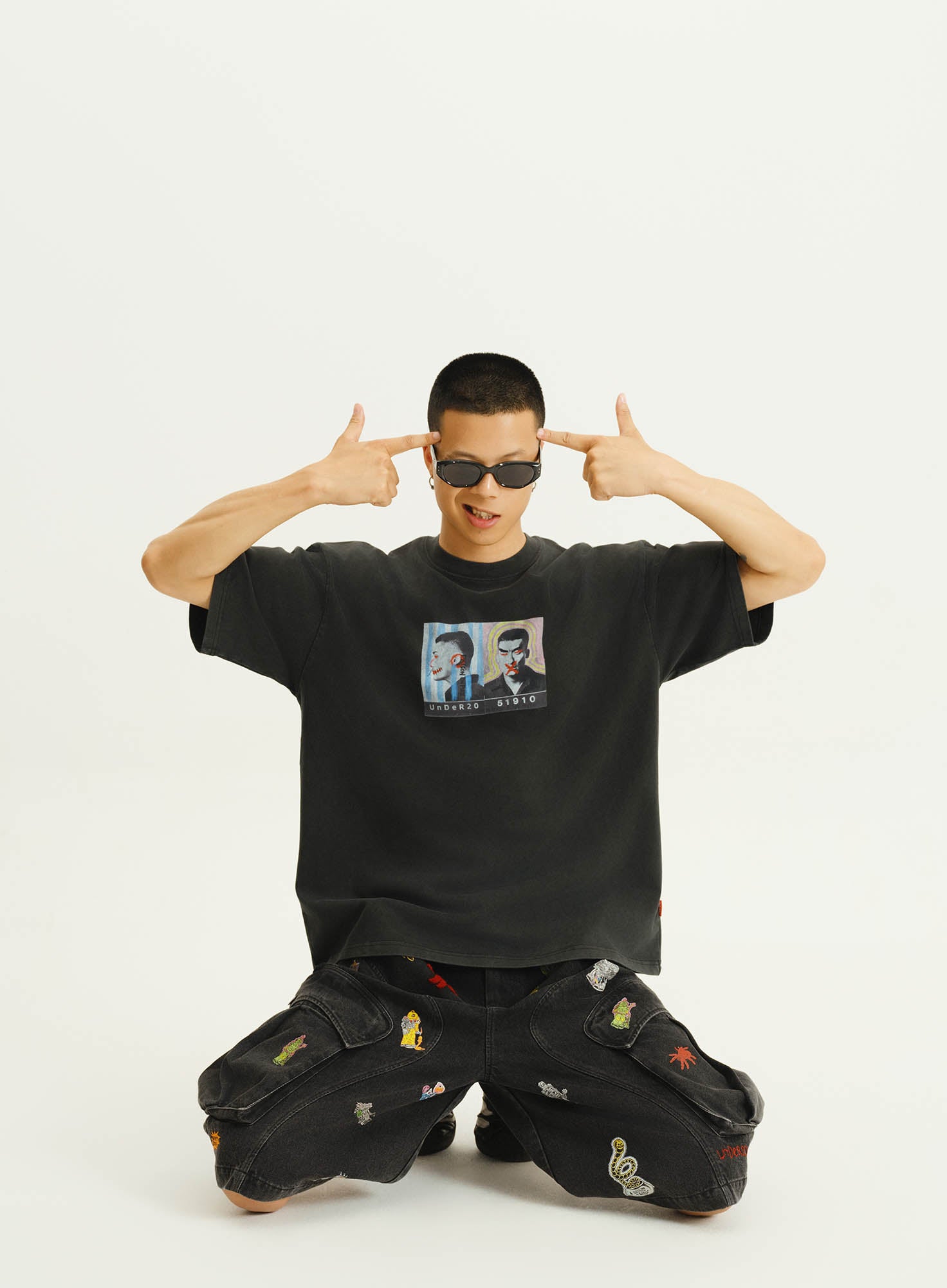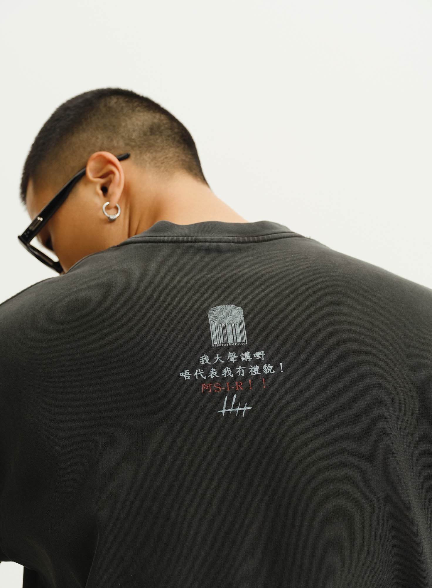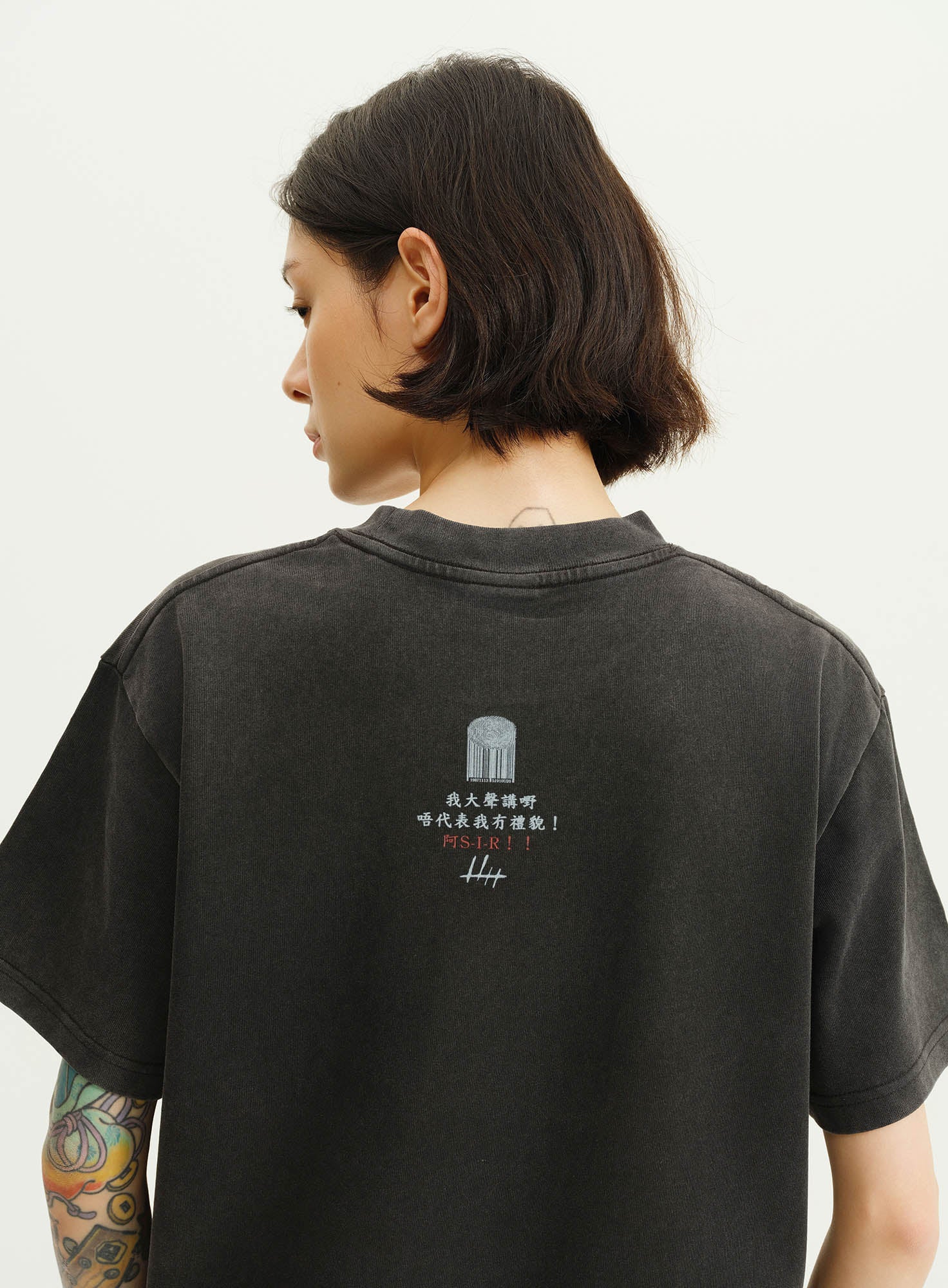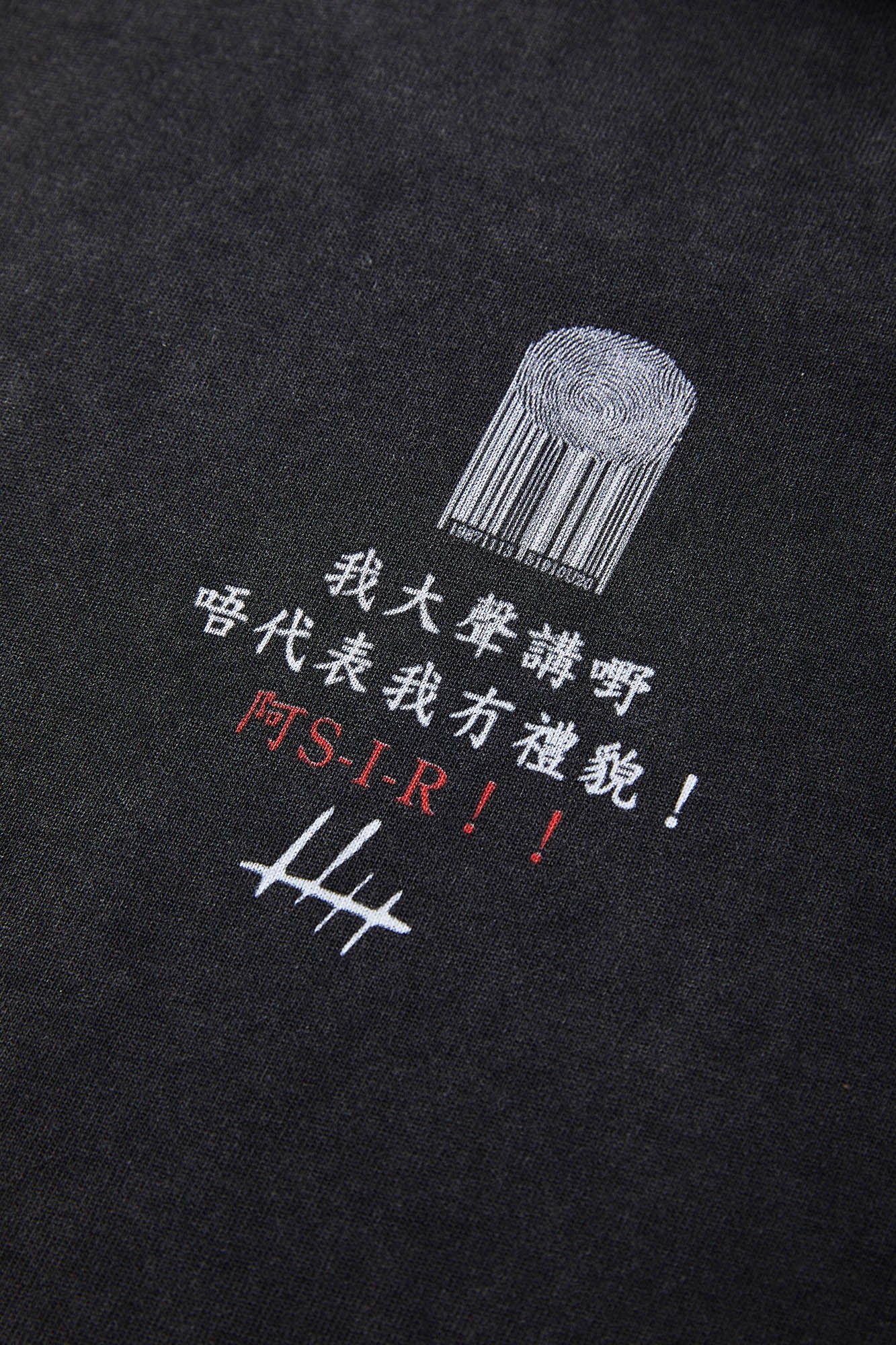 One of the film’s iconic scenes shows Leung Ka-fai’s character being processed upon entering prison. We adapted a still from this scene in a bold pop-art style: his mouth is sealed, but his eyes burn with fire—echoing the film’s English title Prison on Fire. The number “51910” on the shirt represents the prisoner ID of his character.On the back is the film’s most iconic line. In the film, Chow Yun-fat, playing a prisoner, roars at the brutal prison guard portrayed by Tommy Wong:“Just because I speak loudly doesn’t mean I’m being disrespectful, Sir!” Back then, this line sparked a range of interpretations. Today, it invites us to ask — what might it mean now?